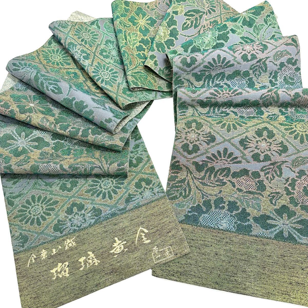 - 【七福】c512 逸品 高級品 正絹 袋帯 全通 金華山織 瑠璃黄金 正倉院文様 金糸 豪華
