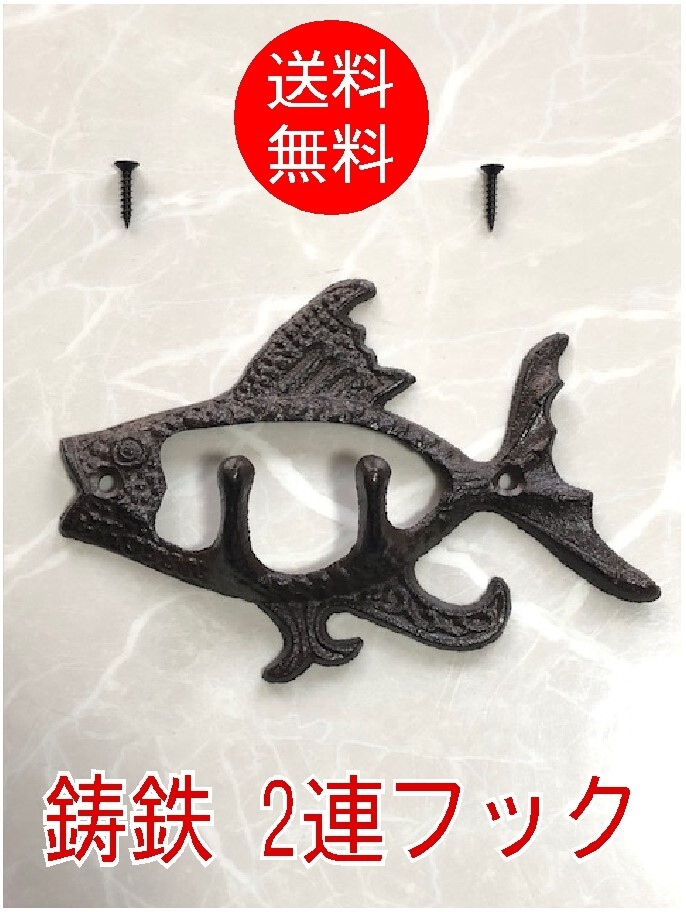 - 【鋳鉄】2連フック 壁掛け アンティーク 収納フック キーフック 園芸 道具整理 ハンガーフック 壁面 帽子掛け 鍵