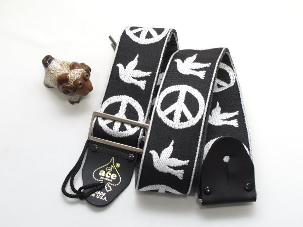 - [新品] ACEギターストラップ ACE-6 BLACK PEACE & DOVE BLACK ACE VINTAGE REISSUE Guitat Straps