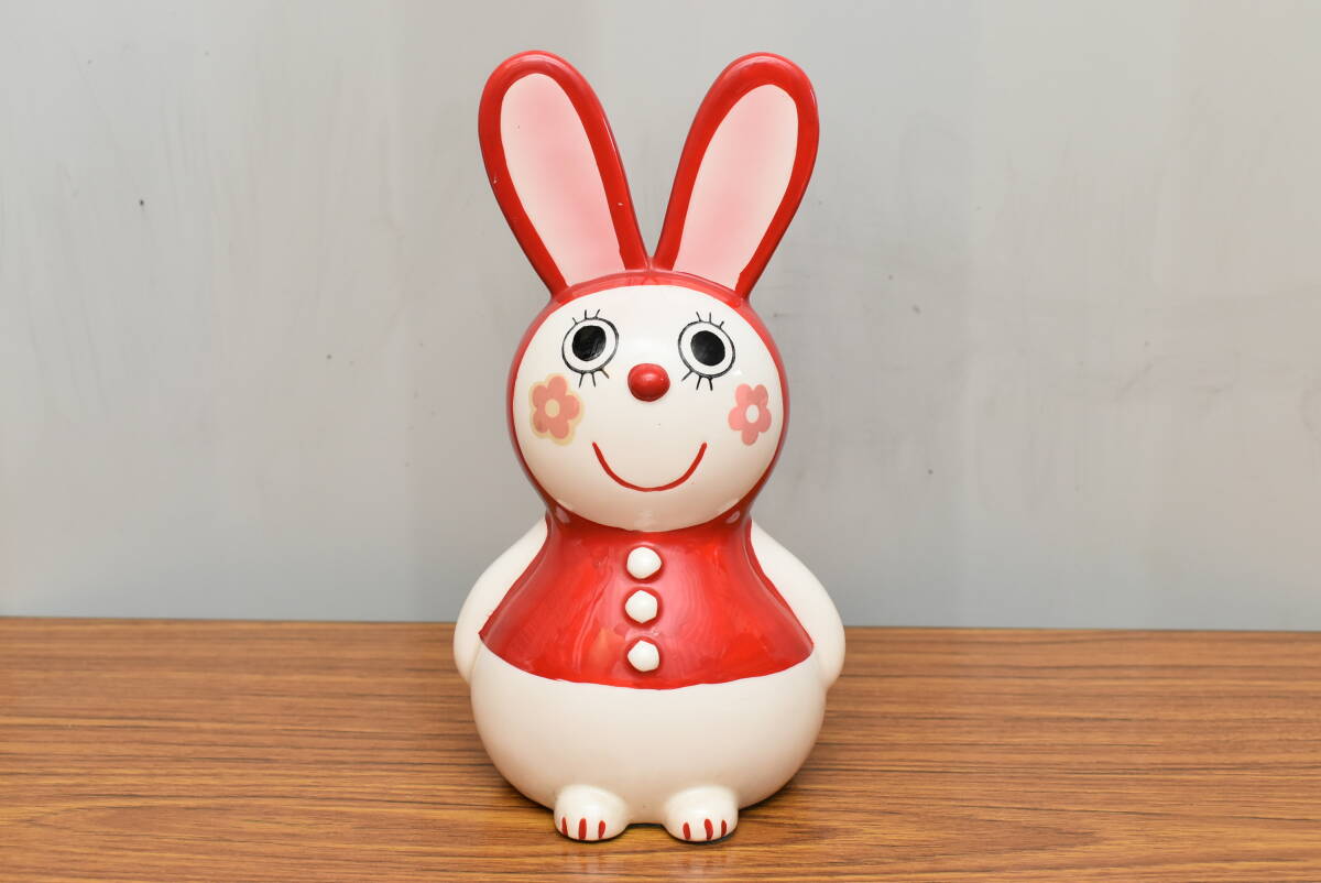 - 内藤ルネ RUNE 陶器人形 ウサギ■昭和レトロ 陶器製人形 うさぎ 置物 人形 ファンシー ヴィンテージ 貯金箱