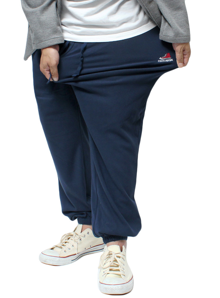 > 【新品】 2L ネイビー×シューズ刺繍 コンバース(CONVERSE) イージーパンツ メンズ 大きいサイズ もちもち のびのび ストレッチ ゆったり