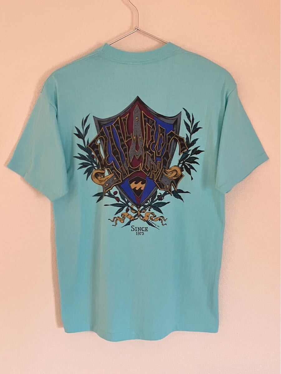 - 90s BILLABONG 半袖Tシャツ ティファニーブルー×プリント 100%COTTON M MADE IN USA デッドストック(ワンウォッシュ) オールドサーフ