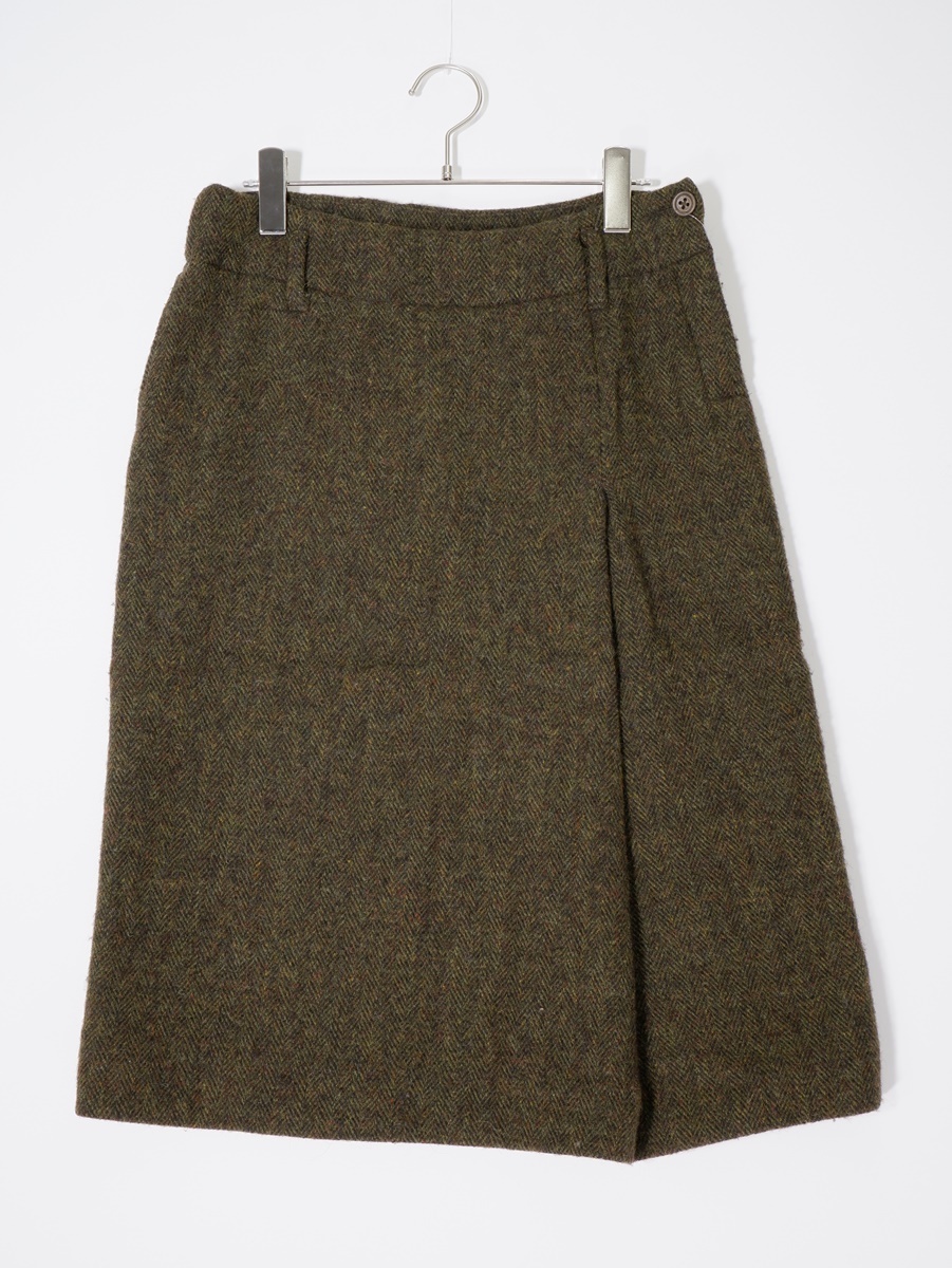 - 45R/フォーティファイブアール(45rpm) スコットランド生地 ヘリンボーンシェットランドツイードウールスカート [LSKA78010]