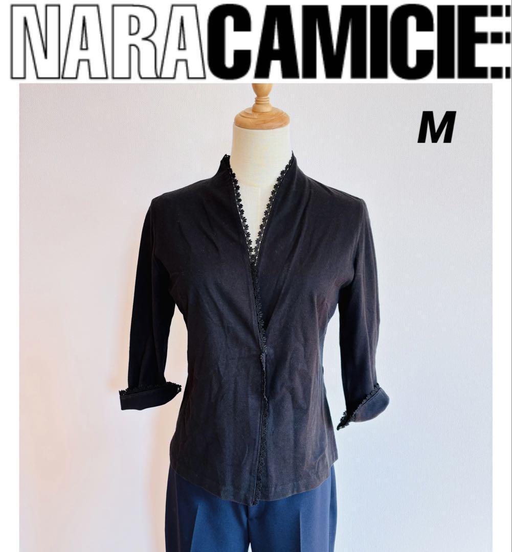 - NARACAMICIE ナラカミーチェ レース 七分袖 カットソー カーディガン 黒 M