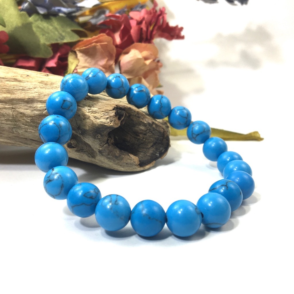 > ターコイズ パワーストーン ブレスレット 10mm シンプル 開運 浄化 数珠ブレス メンズ・レディース 男性 #1 ☆