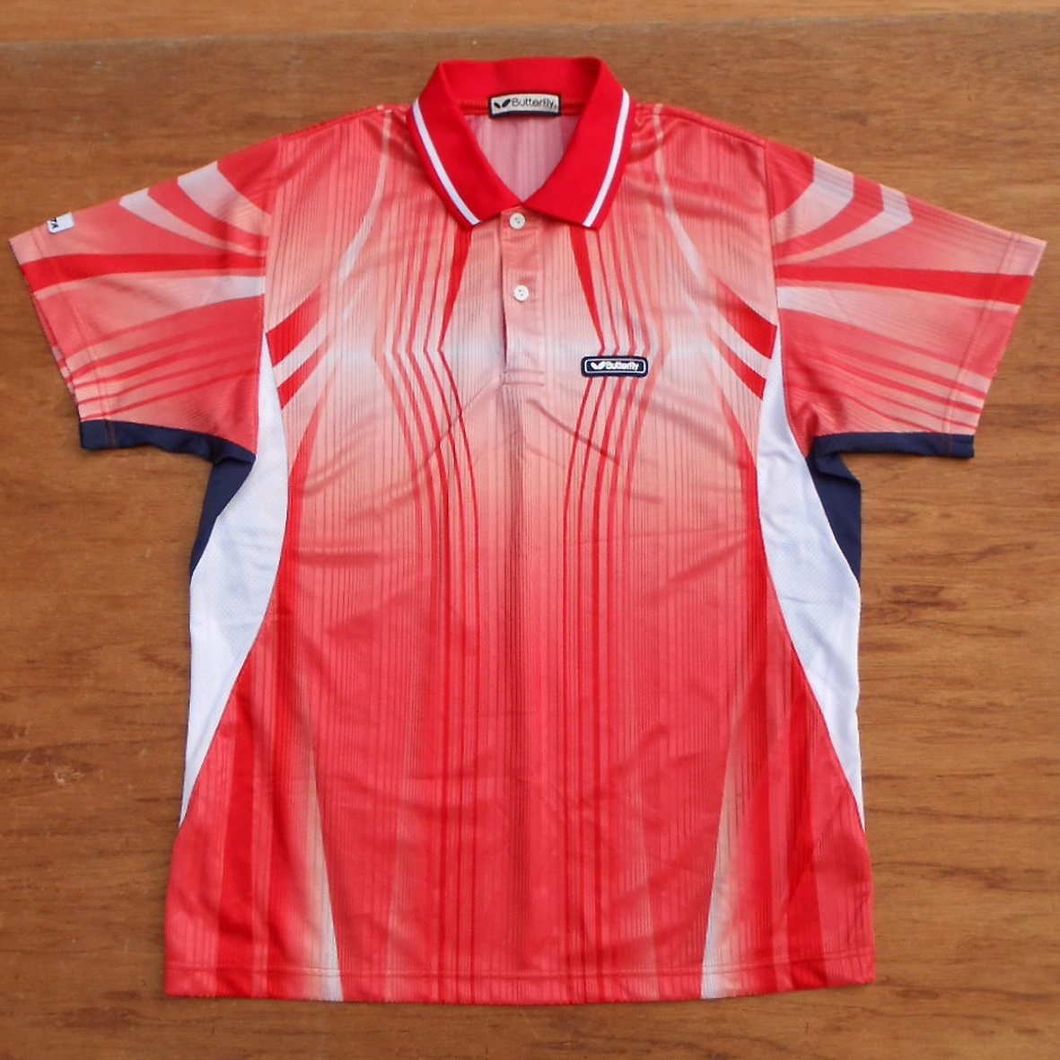 - Butterfly バタフライ ゲームシャツ M レッド~オレンジxホワイトxネイビー 赤 JTTA ユニフォーム 日本製 ポロシャツ 卓球 Nittaku ニッタク