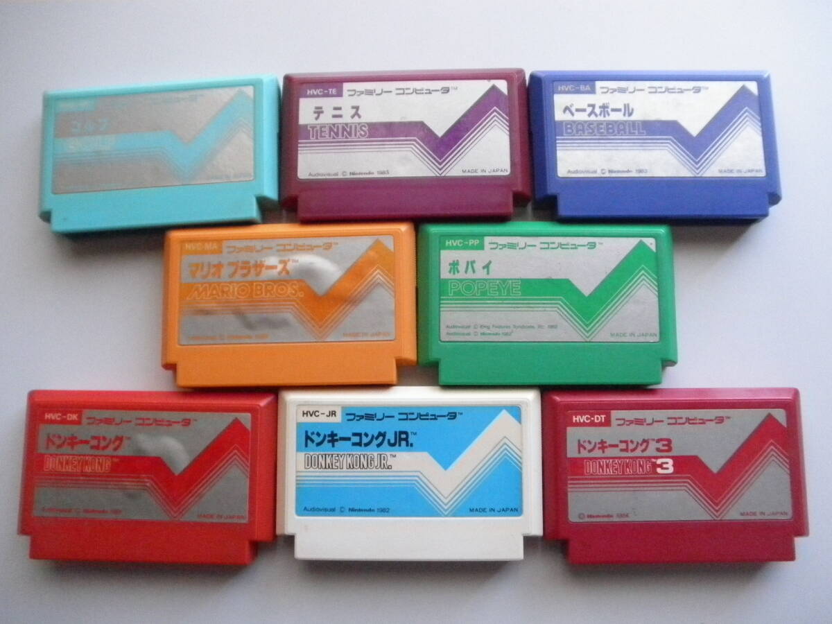 - ●FCソフトセット 任天堂クラシック8本 テニス、ベースボール、ゴルフ、マリブラ、ポパイ、ドンキーコング(、Jr.、3) 初期起動確認済