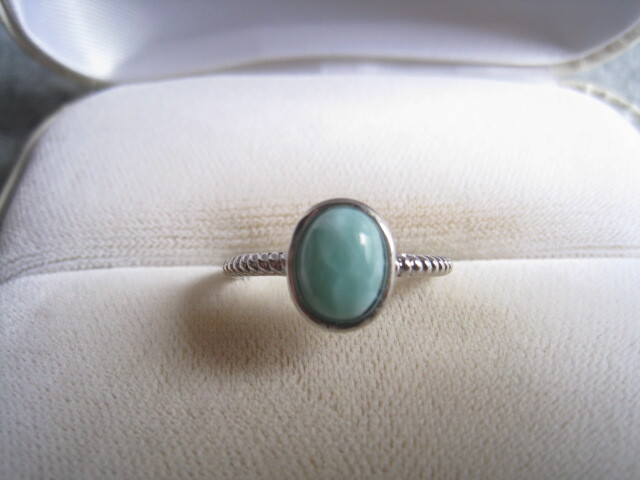 - [SAMU]素敵!!天然ラリマー8mmx6mm フリーサイズ 指輪リング 新品同様!