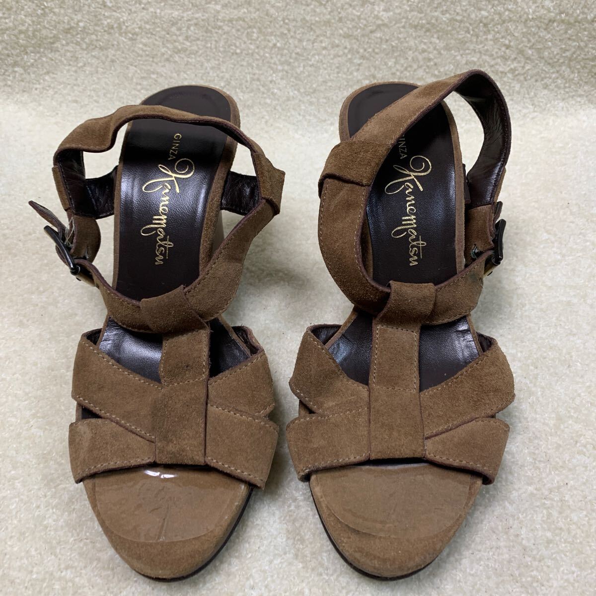 > 銀座かねまつ バックストラップサンダル ウェッジソール スウェード ブラウン 23㎝Dヒール約9㎝
