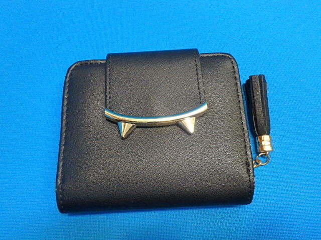 - n505k9 二つ折り財布 猫耳デザイン 黒/ピンクベージュ 女性 レディース 中古 (25-0424-1)
