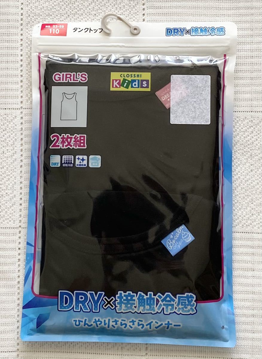 > 新品110 タンクトップ下着2枚組 黒無地 DRY×接触冷感 下着 インナー 肌着 女児 女の子用 即決
