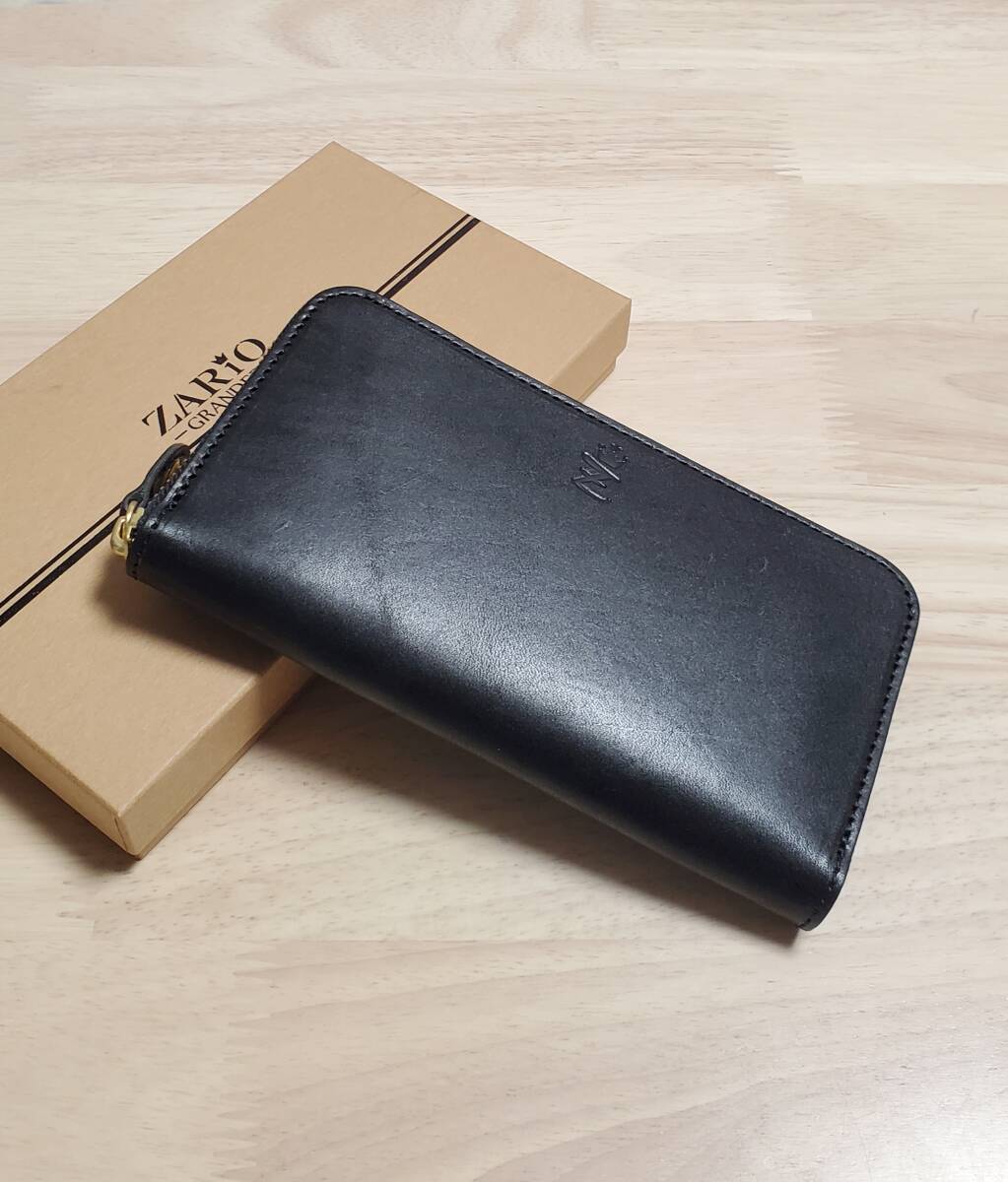 - 新品 未使用 美品 ZARIO-grandee- ラウンド長財布 ラウンドファスナー メンズ ロングウォレット 革 栃木レザー 日本製 ブラック×グリーン