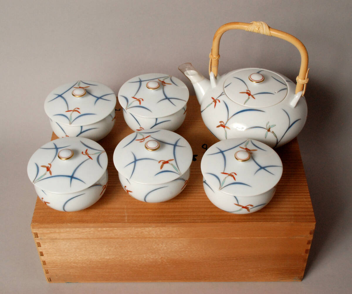 - 美術有田焼 香蘭社 金彩上品な蘭柄 急須&蓋付き湯呑5個セット