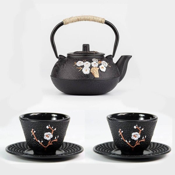 - 南部鉄器 急須 鉄瓶 鉄器 鉄のやかん 鋳鉄 お茶用沸騰水 鉄ティーポット 茶道具 鉄分補給 直火 ih対応 統工芸品 (カップ付き, 600ML)