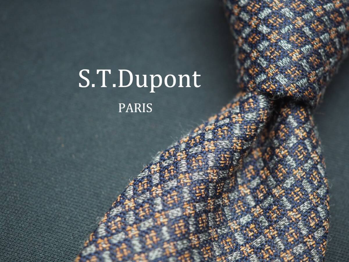 - 美品【S.T.Dupont デュポン】 E1273 ネイビーシルバー系 SILK ブランド ネクタイ 古着 良品