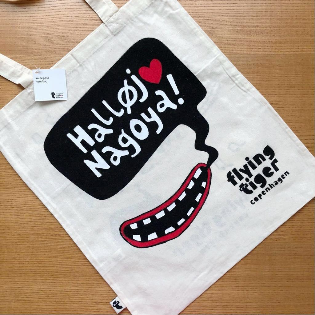 - 新品ハートflying tiger名古屋限定エコバッグ音符トートバッグ お土産フライングタイガー歯ブラック口ショップ袋ショッパー愛知県ホワイト