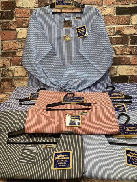 - 送料無料!人気のストライプ柄&胸ワッペンタイプ ポケット付きかっぽう着(画像から)1枚