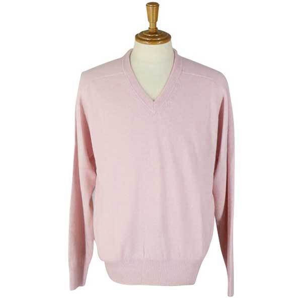 - 激安 FADS カシミヤ100% Vネックセーター 淡ピンク LL