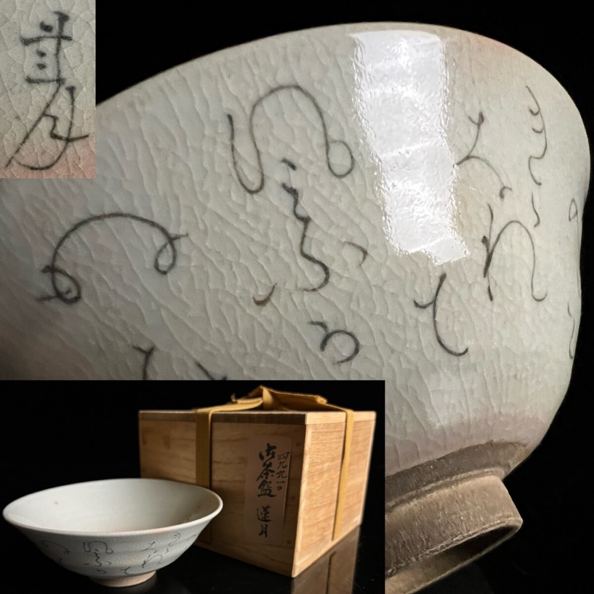 - ◇鸛◇ 古美術品 大田垣蓮月 尼 自詠和歌文茶碗 13.8cm 箱付 茶道具 茶碗 唐物骨董