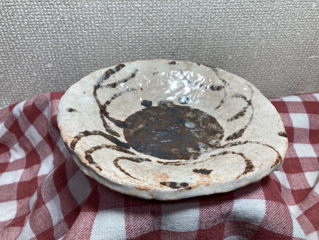 - 佐藤和次 魯山人 写し 蟹絵 皿 箱無 織部 早蕨窯 本物返品OK 250306ー11
