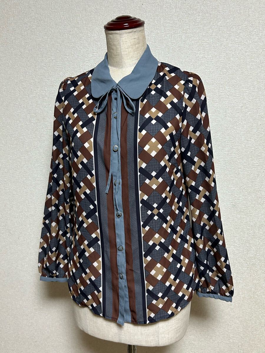 - 【REDYAZEL★レディアゼル】ブラウス・リボン付き・くるみボタン・薄手・Sサイズ・送料180円