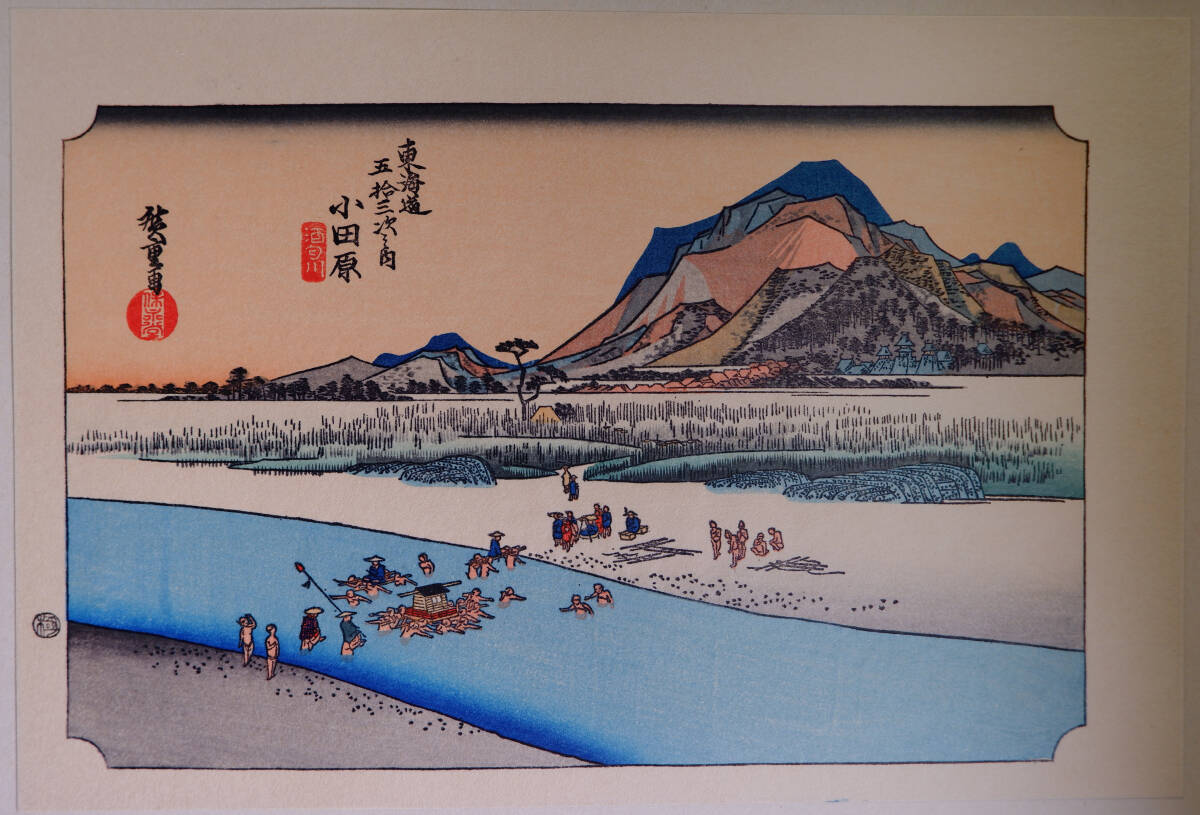 - 【お買得 極美】広重『東海道五十三次』保永堂より「小田原(酒匂川)」手摺木版画 高見沢研究所の真作 手刷り 歌川広重 べらぼう 浮世絵