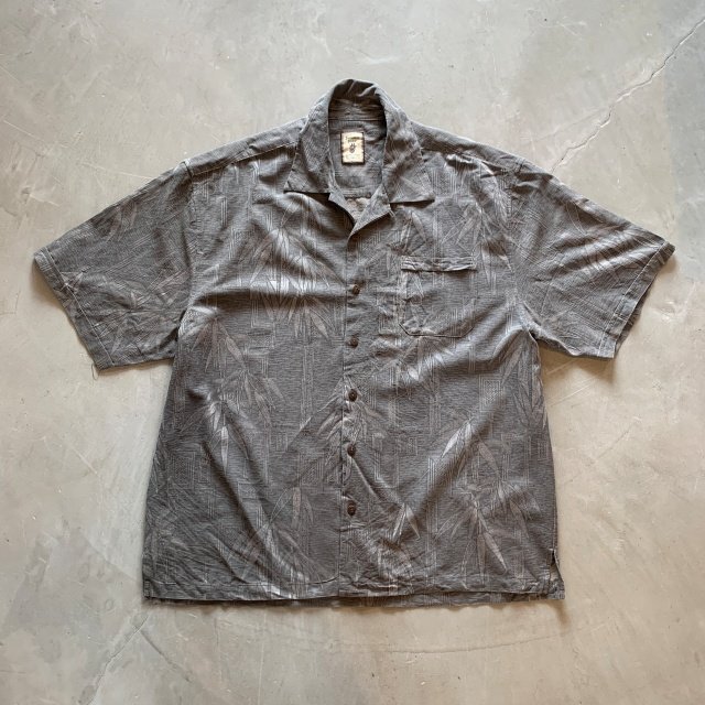 > 【XL】Jamaica Jaxx ボックス 半袖シルクシャツ グレー バンブー柄 総柄■ビンテージ オールド アメリカ古着 開襟 オープンカラー 竹 和柄