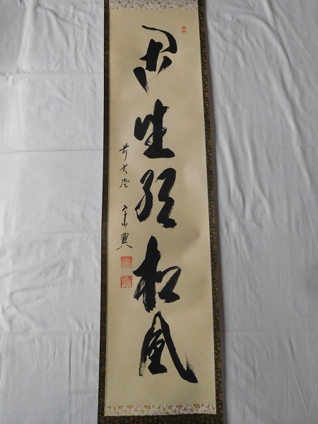 - 【模写】掛け軸 前大徳寺 極楽寺 西垣宗興 閑坐聴松風 在銘 落款 茶掛 紙本肉筆 人が書いたもの 共箱