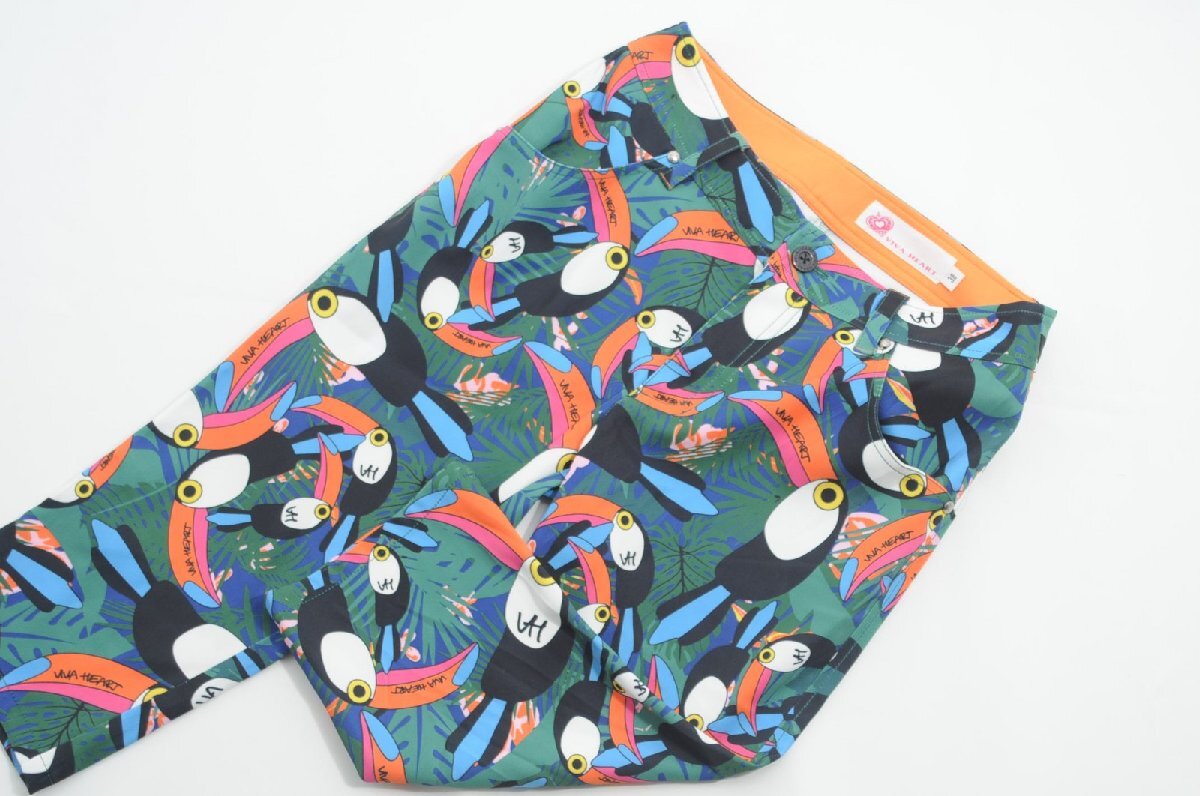 - coco 中古【値下げ】ビバハート VIVA HEART クロップドパンツ 38(S) 青×緑×カラフル/鳥柄 レターパックプラス発送可 63379