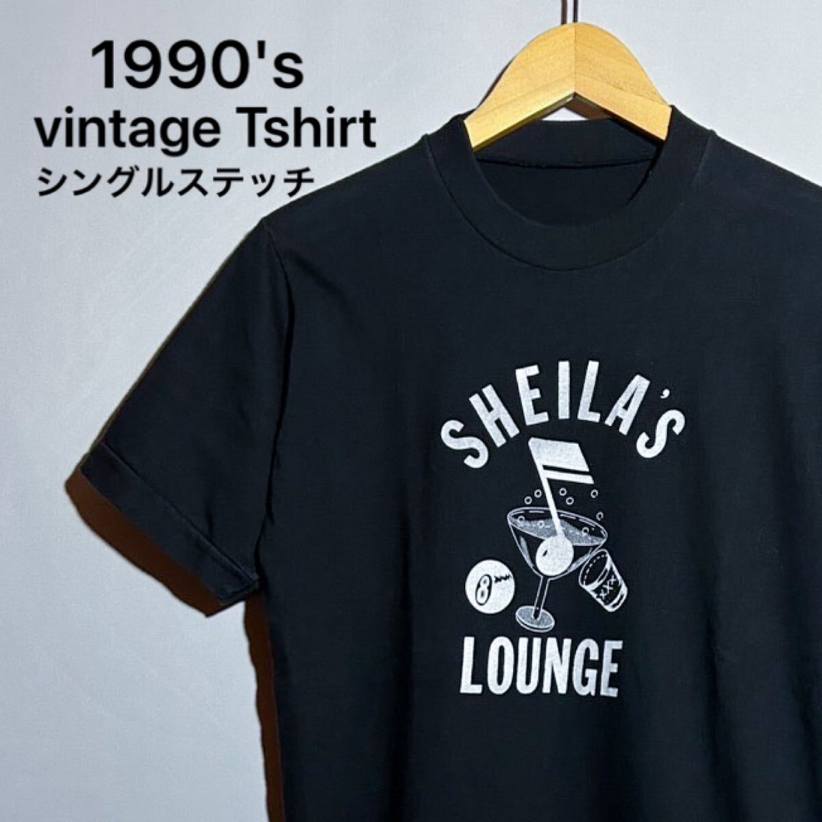 > 1990年代 90's ヴィンテージ Tシャツ ブラック 黒 シングルステッチ 音符 8ボール ビリヤード カクテル bar アメリカ USA 古着 ロカビリー