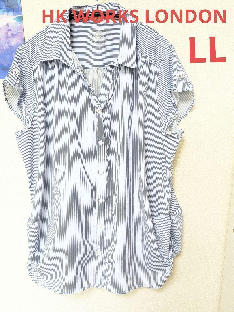 - 【HK WORKS LONDON】ストライプ シャツ 爽やか ブルー★ LL