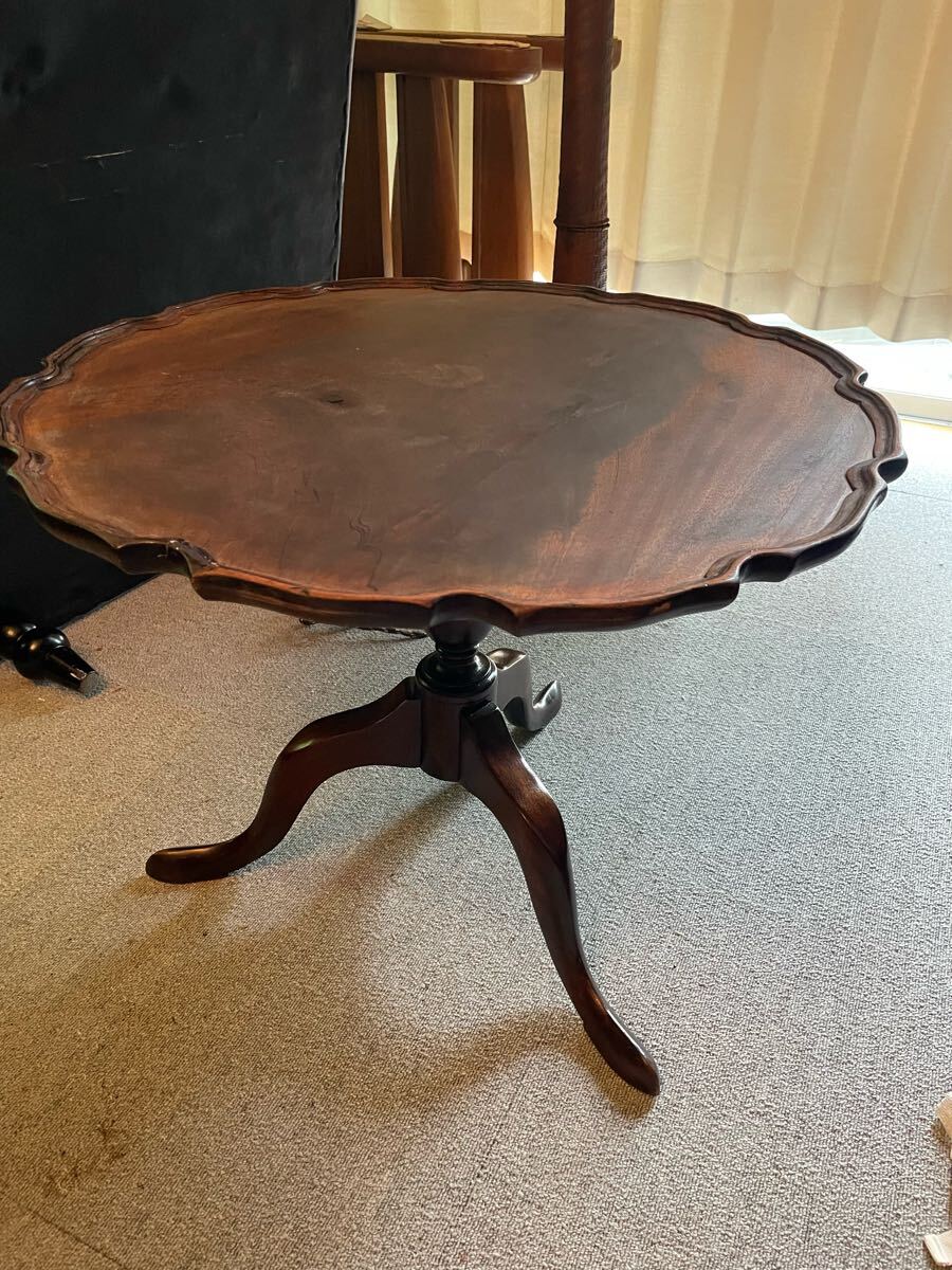 - ロイドアンティークス 英国製 マホガニー サイドテーブル 折畳式机 昭和レトロ チルトトップテーブル アンティーク 当時物