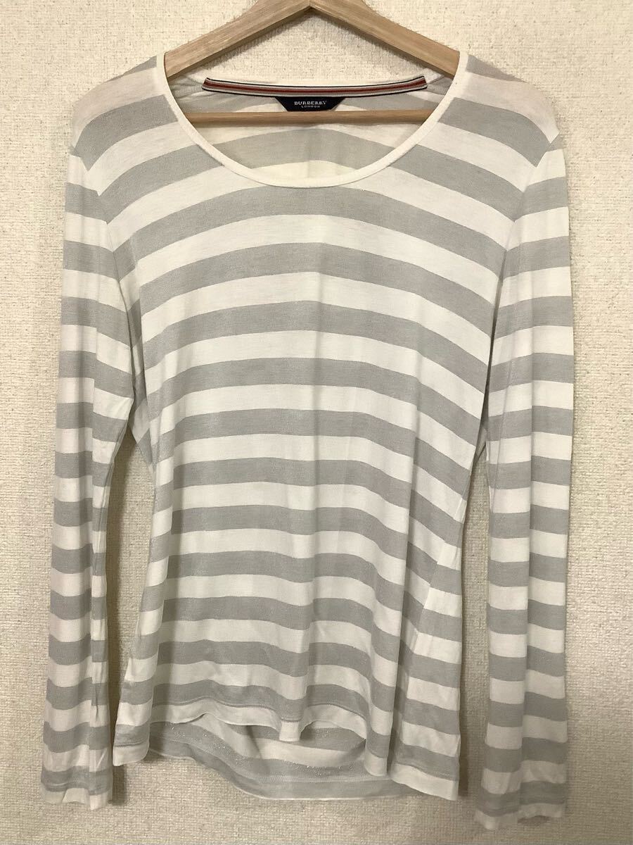 > BURBERRY バーバリー ボーダー柄 長袖Tシャツ カットソー グレー ラメ入り ハイブランド レディース 古着 2