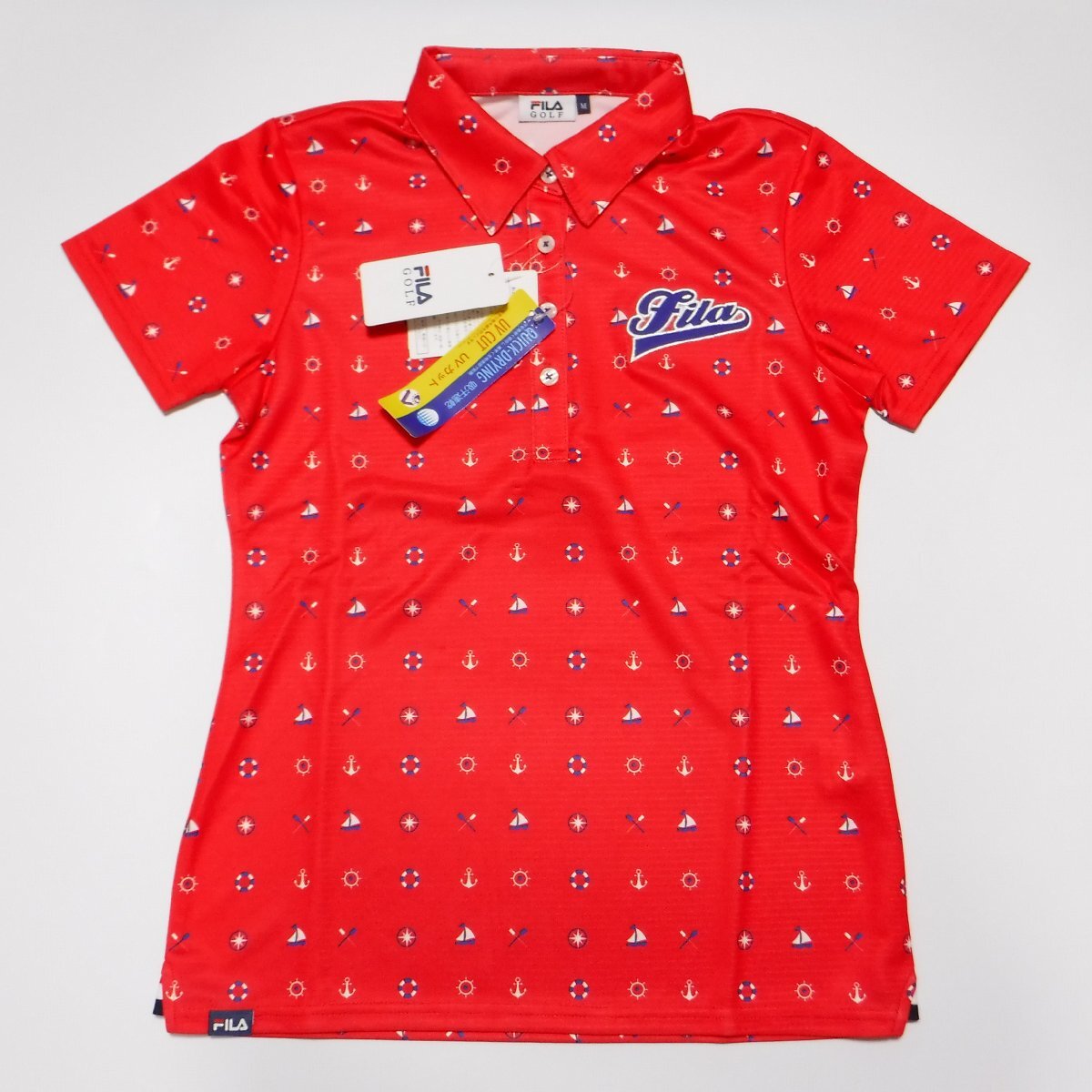 - TT19 FILA GOLF フィラゴルフ レディース 定価9790円 新品 マリン柄 ストレッチ半袖シャツM UVカット 吸水速乾