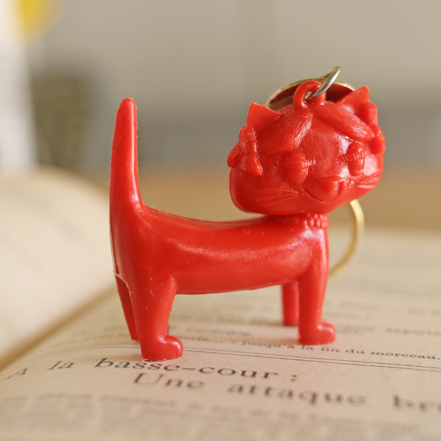 - フランス ビンテージ キーホルダー Unimel 猫 赤い猫 フランスアンティーク ブルボンキーホルダー 赤 レッド フレンチキーホルダー C*
