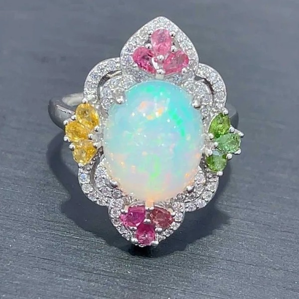 女性のためのスターリングシルバー天然オパールリング、10x12mm、婚約、カクテルパーティー、ファインジュエリー、新しいコレクション