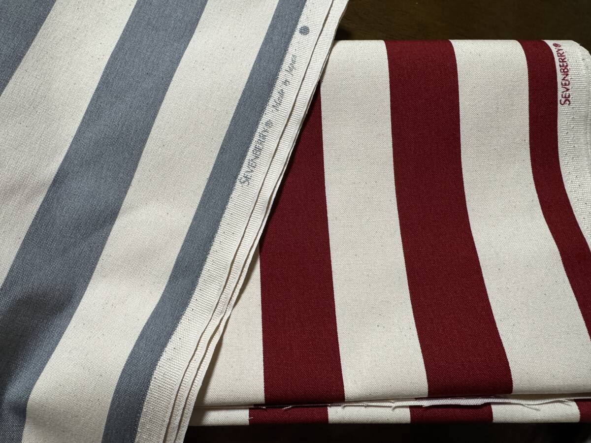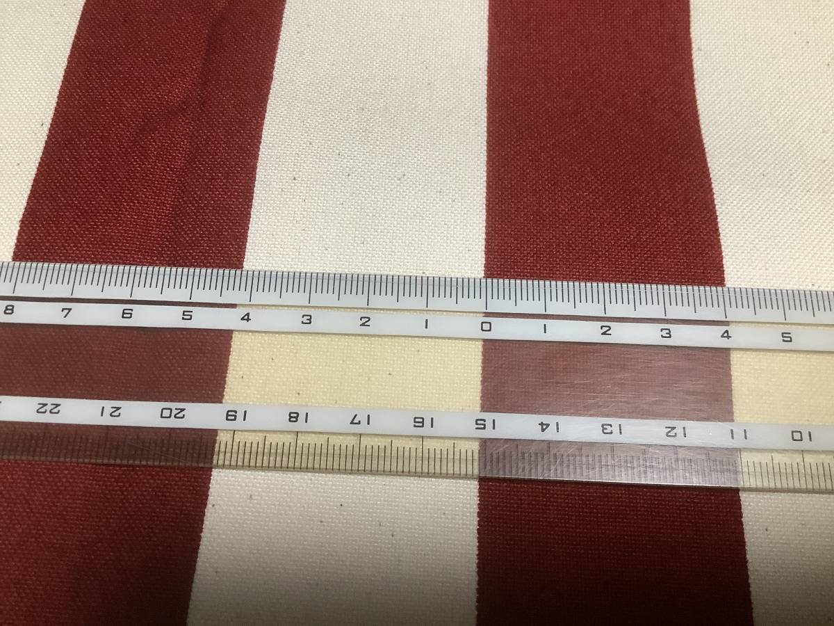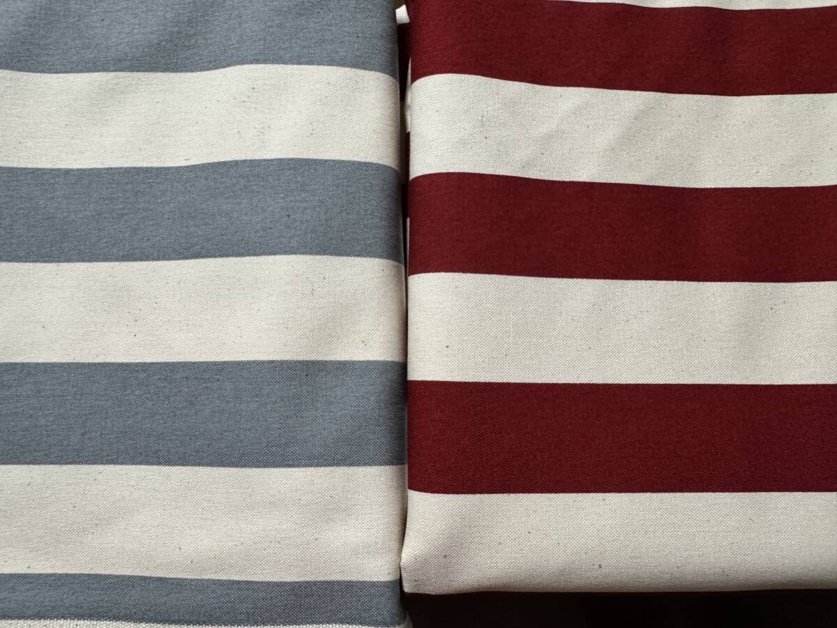> 3m 11号帆布 110×150cm×2色 300cm ストライプ 綿100% /生地 はぎれ 日本製 濃赤×生成 ブルーグレー×生成