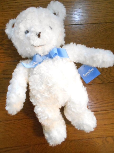 - familiar・ファミリア☆ファミリアベアー(小) 約30cm☆廃盤品xタグ付き♪ロゴ入りブルーリボン付きふわふわボアぬいぐるみ 未使用品♪