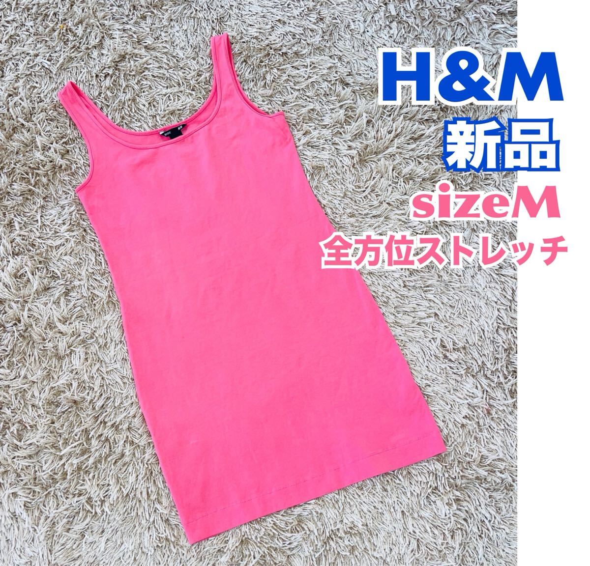 - 新品 H&M ノースリーブ タンクトップ ストレッチ 全方位伸縮 M 細見え 送料無料