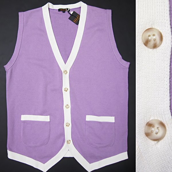 > 【新品ブランド品】送料無料 ケントアヴェニュー Kent Ave. 日本製 ニットカーディガン メンズベスト L 薄紫 セーター 綿 24-30324-S