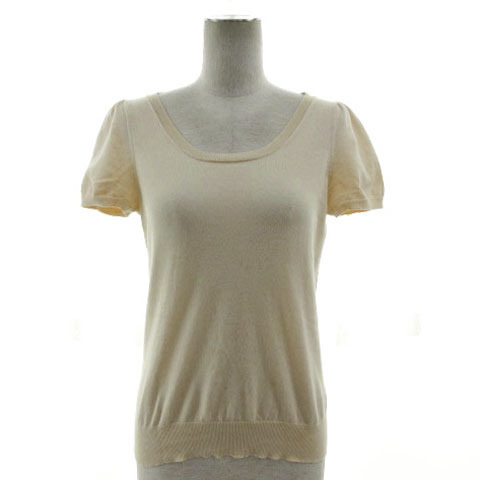 - シップス SHIPS ニット ジュエルネック 半袖 コットン ベージュ M レディース