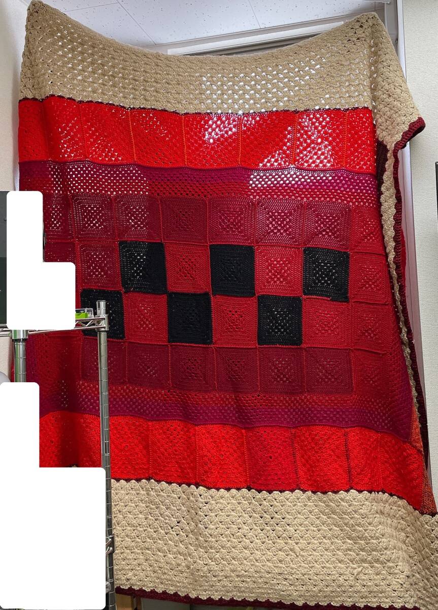 > レトロポップ♪【手編み マルチカバー】ソファ掛け/ベットカバー/インテリア/ハンドメイド/200㎝×200㎝/A75-054