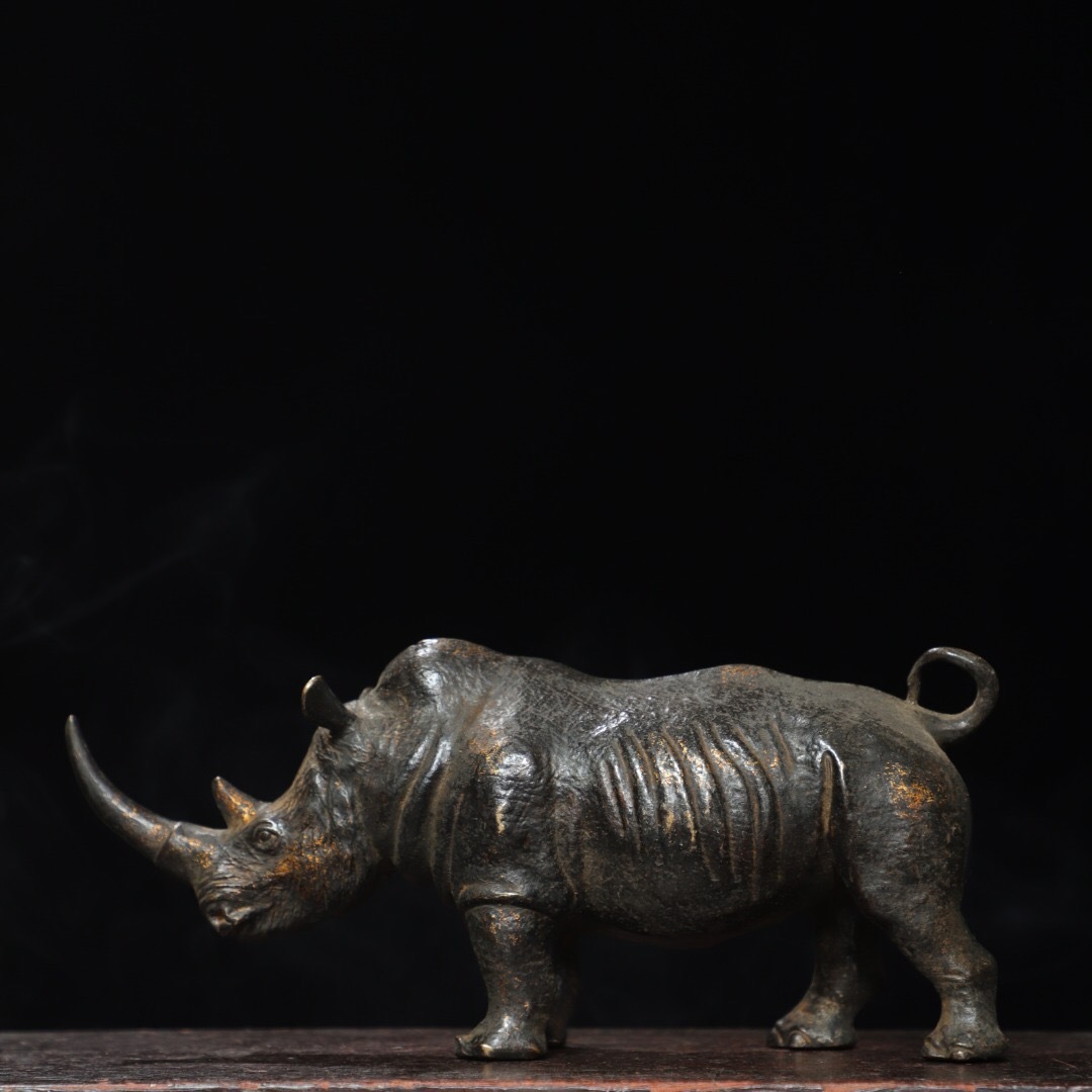 - 蔵友旧蔵出 銅製 拓金 犀牛尊 密宗密教 供養品 仏教美術品
