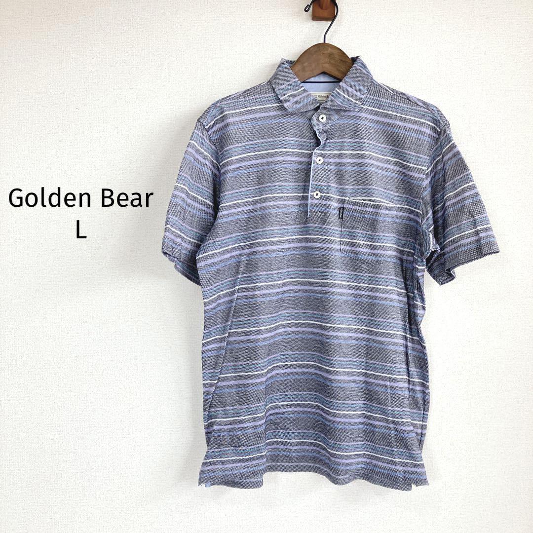 - ゴールデンベア ポロシャツ【L】ボーダー 紳士 涼しげ グレー メンズ