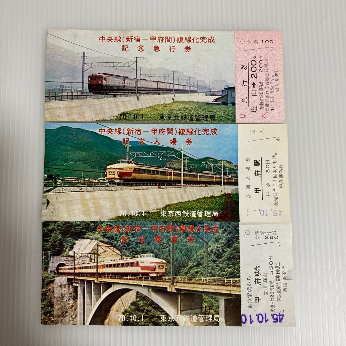 > n 5133 中央線(新宿-甲府間)複線化完成記念乗車券/記念入場券/記念急行券(見本品) 3枚セット 東京西鉄道管理局