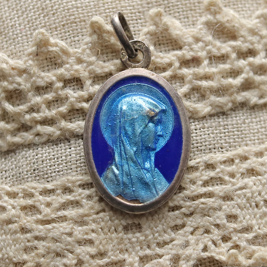 - フランス アンティーク 【ルルドの聖母マリア】 メダイ インマキュラータ/LOURDES メダル ロザリオ キリスト 聖母 マリア 教会/3-E