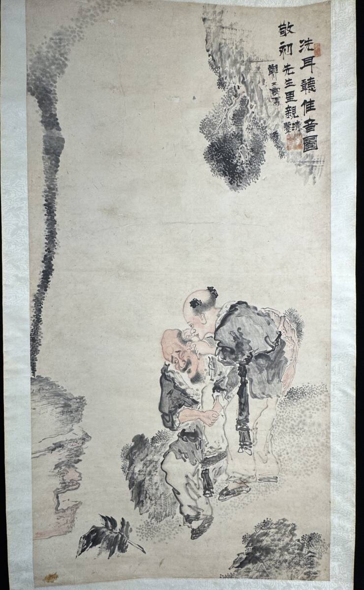 > 【真作】鳳◆中国美術 鄭玉棠「洗耳聴佳音図」 紙本 肉筆保証 大幅 255-43 中国 日本画 古画 絵画 掛軸 掛け軸 古美術