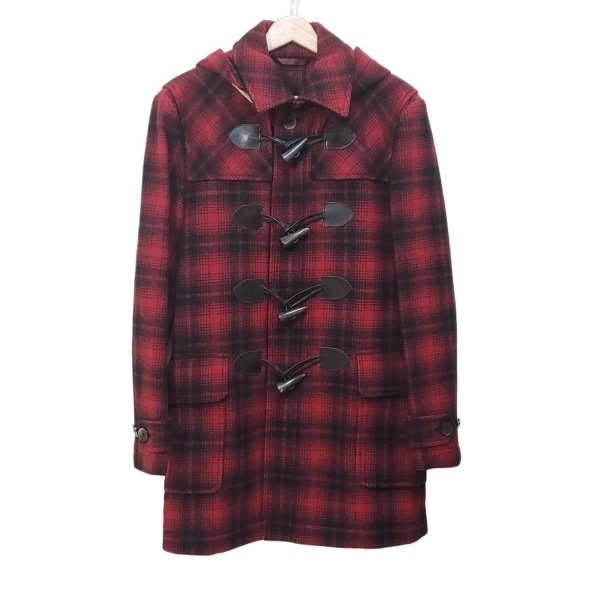 - ポールスミス PaulSmith ダッフルコート サイズM - レッド×黒 メンズ 長袖/チェック柄/PS/ジップアップ/冬 コート