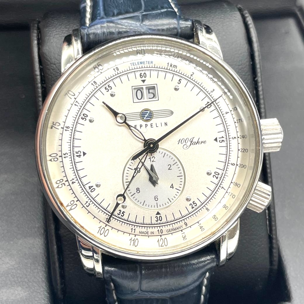 - ZEPPELIN ツェッペリン デイト シルバー文字盤 レザーベルト メンズ 時刻・日付調整OK #A2604