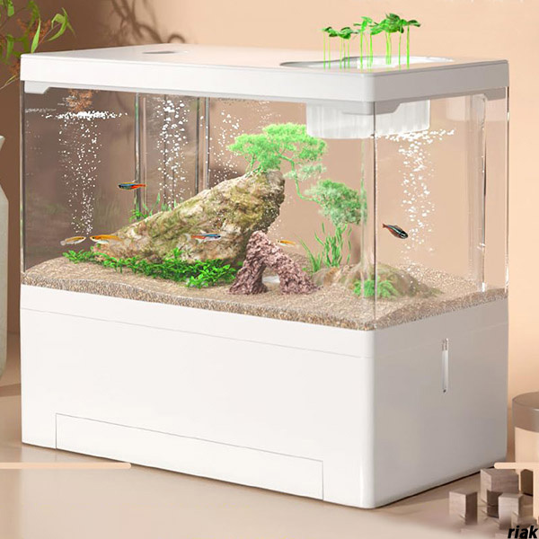 - 【高品質な透明アクリルタンクで高透過率】 初心者向け LED付き小型水槽セット ホワイト 魚飼育 初心者 アクアリウム コンパクト